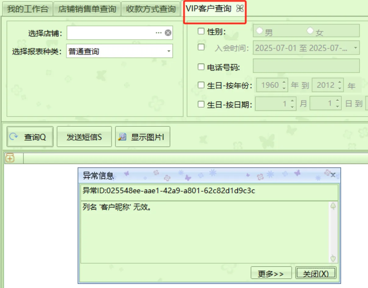 ---20201010新VIP卡种类对应查询试图ESM_BAS_VIP_V1New if exists(select 1 from sysobjects where id=OBJECT_ID('ESM_BAS_VIP_V1New') and type='V') drop view ESM_BAS_VIP_V1New GO CREATE VIEW [dbo].[ESM_BAS_VIP_V1New] AS SELECT vip.id AS 自动编号, vip.vip_id AS 贵宾卡号, kind.VIP_KIND AS 卡种类, vip.vip_name AS 客户姓名, vip.Vip_Realname as 客户昵称, CAST(CASE vip.vip_sex WHEN 1 THEN '男' WHEN 0 THEN '女' ELSE '' END AS char(2)) AS 性别, vip.vip_MyId AS 身份证号, vip.vip_reg_date AS 入会时间, vip.vip_birthday AS 生日, vip.vip_mobil_phone AS 手机, vip.vip_case AS 发卡原因, vip.shp_Id AS 发卡店, vip.vip_bus_tele AS 商务电话, vip.vip_email AS 电子邮件, vip.vip_bp AS 呼机, vip.vip_add AS 地址, vip.vip_tele AS 电话, vip.vip_type AS 种类, vip.vip_pwd AS 密码, vip.vip_work AS 职业, vip.vip_discount AS 折扣率, vip.vip_reDiscount AS 允许折上折, vip.vip_upMoney AS 折上折限额, vip.sys_valid AS 状态, vip.sys_memo AS 备注, vip.sys_date AS 日期, vip.VIP_QQ AS QQ, vip.VIP_microblogging AS 博客, vip.VIP_microchannel AS 微信, DATEPART(year, vip.vip_birthday) AS 生日_年, DATEPART(month, vip.vip_birthday) AS 生日_月, DATEPART(day, vip.vip_birthday) AS 生日_日 FROM dbo.BAS_VIP AS vip LEFT OUTER JOIN dbo.BAS_VIP_KINDNew AS kind ON vip.VIP_KIND = kind.VIP_ID GO